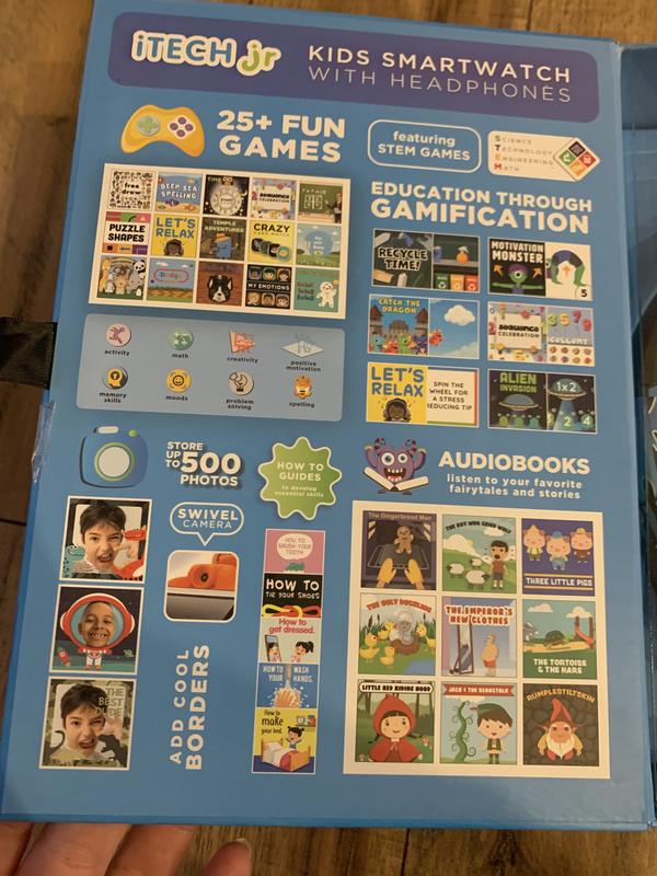 So we got the iTECH Kids smartwatch in pink for our daughter and she loves it. She is 11, which some of the things like the tying your shoes and alphabet songs aren’t entirely relevant, but still, it holds music, it takes and stores videos and photos, it has a calculator, an alarm, and some games. Again, some of the games are a little too young for her, but they’d be great for a younger child. My only gripe is the headphones broke pretty quickly, with VERY light use. Realistically I was really just needing the watch for my daughter, so I’m not too hung up on it. Anyways, it’s been at least 2/3 weeks and she’s still using it and loves it!!