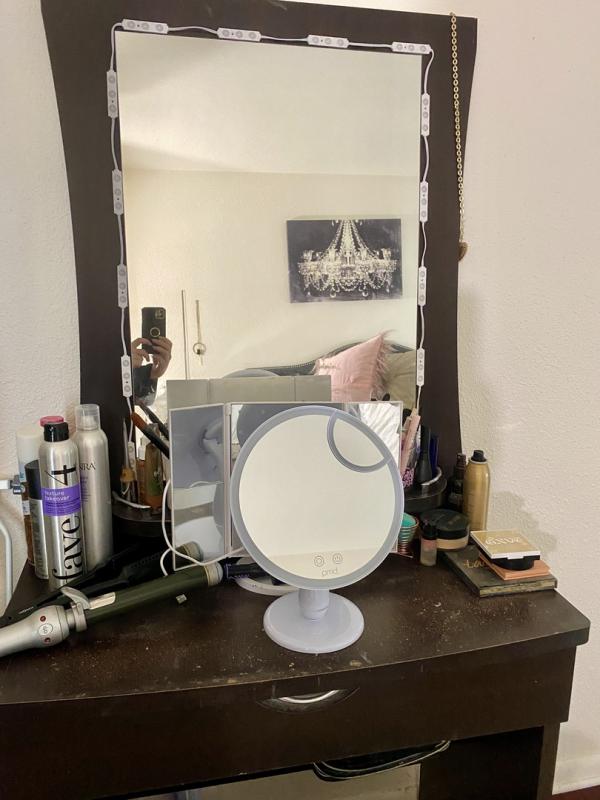 When I first knew I was getting this mirror, I was beyond excited. I just couldn't wait for it to arrive. I had already envisioned as to what it would feel like or look like on my dresser. I thought that I would just gaze into its beauty for hours. That was not the case. I had gotten my hopes up too high. This mirror, although it's not what I envisioned, is still somewhat of a beauty with the mirror and lights part of it. I do enjoy how it has 3 different light settings and can be dimmed or brightened. I also like the built in magnification as I use it regularly to pluck my brows. Now when I first went to charge the mirror I have learned that it only likes its own charger and won't take any other charger. I have also learned how to not hold it by its handle while trying to get the charger in the port as it's a little bit of a challenge and so due to the faulty design of the mirror, the handle unattached itself from the mirror and took a nasty fall to the floor. I went and picked it up off the floor to discover the large cracks in it. I was sad about it, but have since learned to look past the cracks as it still works. The reason as to why I'm giving it 3 stars instead of 5 is due to faulty design of the handle attachment and the fact that it's made with a bunch of cheap plastic. I honestly expected more out of it due to the price and honestly do not recommend and think that the whole mirror needs a major revamp.