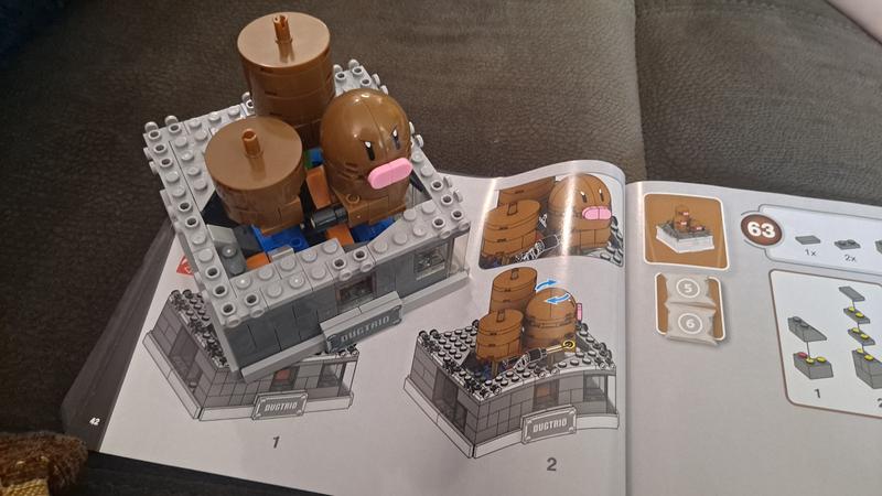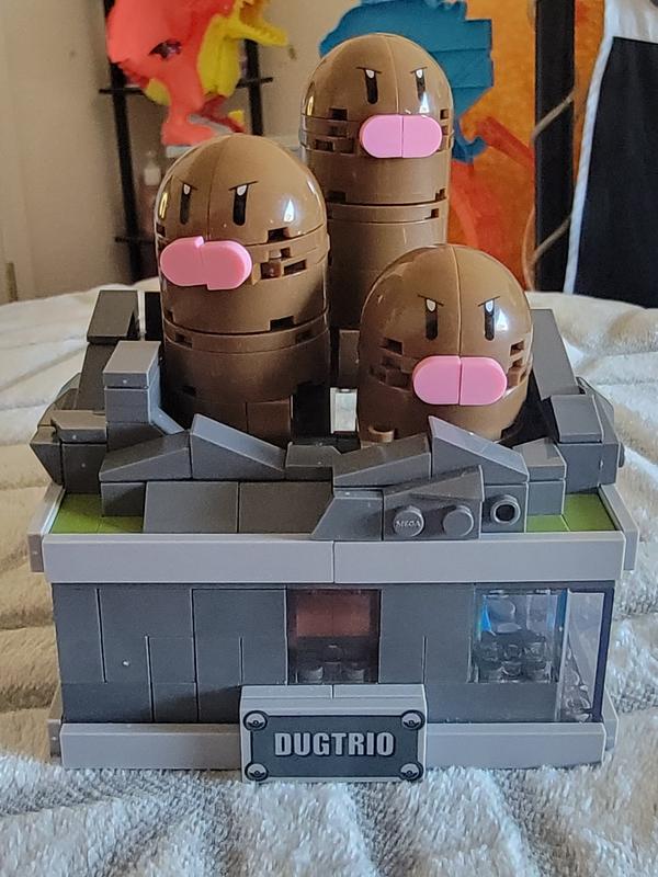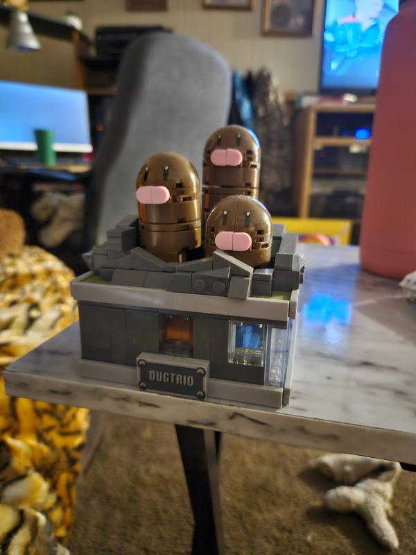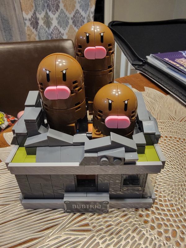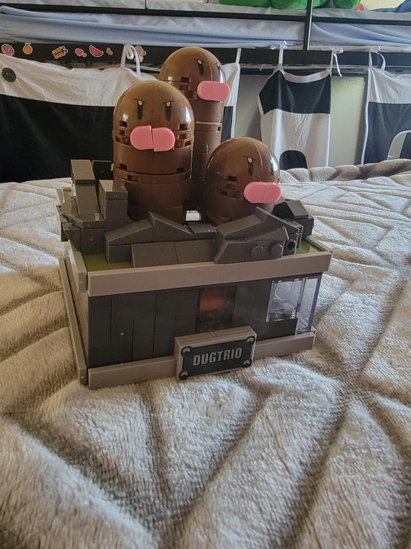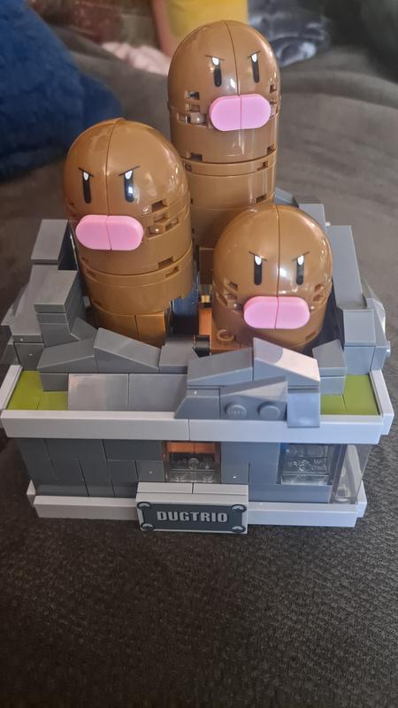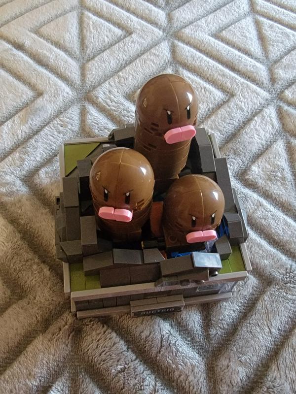 My son enjoyed building the cute dug trio set. It has a hidden button that activates Dug trio’s to pop up. It’s a perfect size to add to his Pokemon collection. Overall it’s a cute toy that’s brings fun building it.