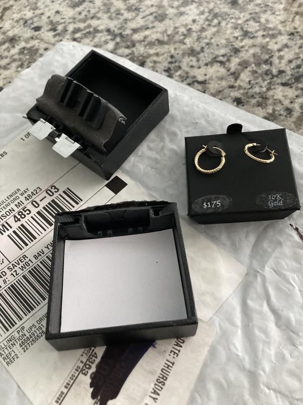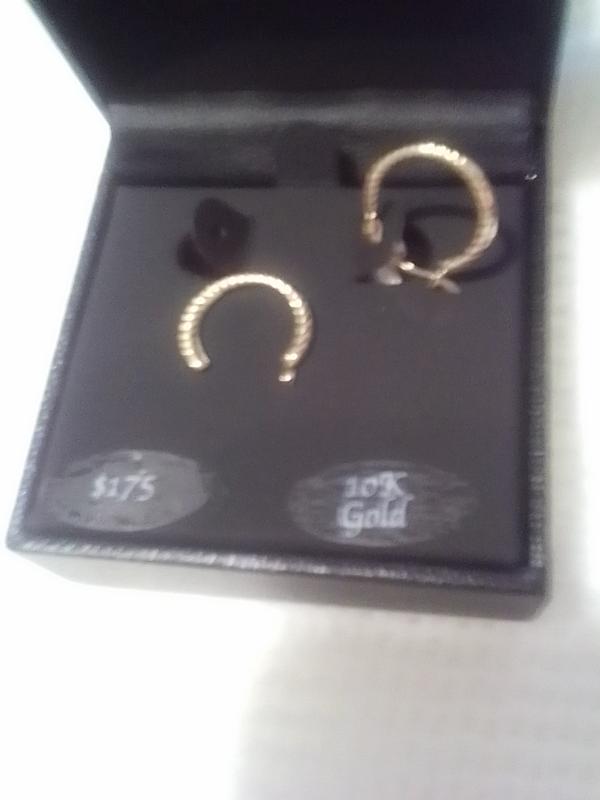 Noticed the earrings were very thin with a tag attached to one of the studs. . The stud broke off when carefully removing the tag which after the fact I read the tag with this message: “Merchandise not returnable if this ticket is removed.” You’re joking right? Did the manufacturer know it was cheaply made and wouldn’t withstand anyone wearing the earrings? Save your money people and buy something else. This item gets a negative 0 and I wouldn’t recommend this product.