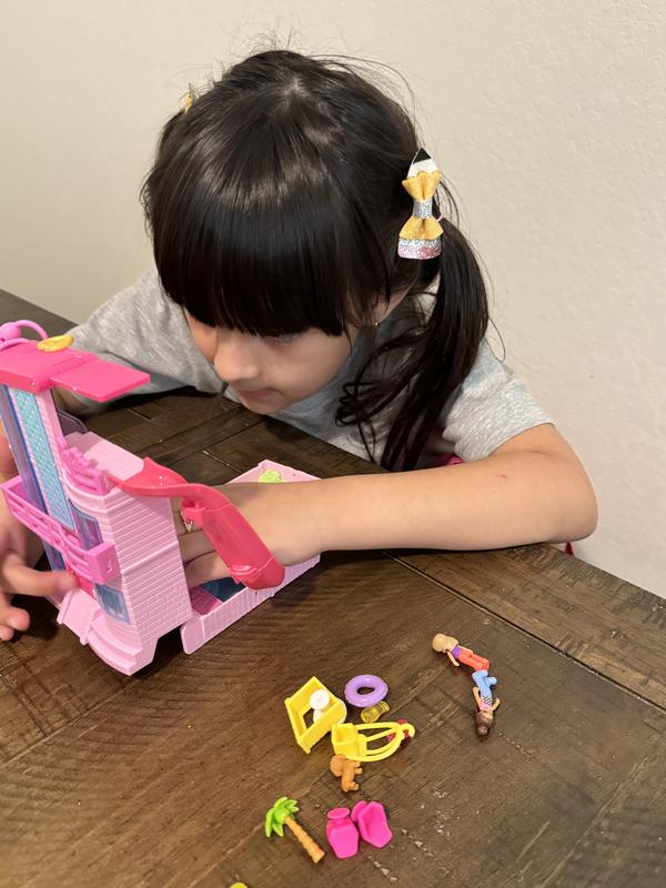 My five year old loved this toy! She loved how well it represented the Barbie Dreamhouse. It was a great toy for our Polly Pocket collection. There was a nice amount of accessories and additional dolls to play with. Mom enjoyed the representation with a wheelchair and the accessibility of the Dreamhouse to accommodate the wheelchair. One thing we struggle with is storing the toy. It is difficult to put all the small pieces back inside the house and still be able to close it. This causes us to struggle to bring this toy on the go. Overall, this was a great toy with all the fun of the Polly Pocket and Barbie worlds combined!