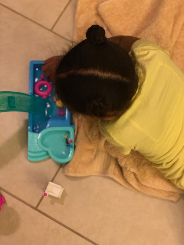 My goodness!! My daughter and our little neighbor girl have so much fun playing with this Polly Pocket Splashtastic Pool!! It's compact enough to bring in the car with us on road trips or just in the pool!! My daughter even plays with it in the bath lol!!