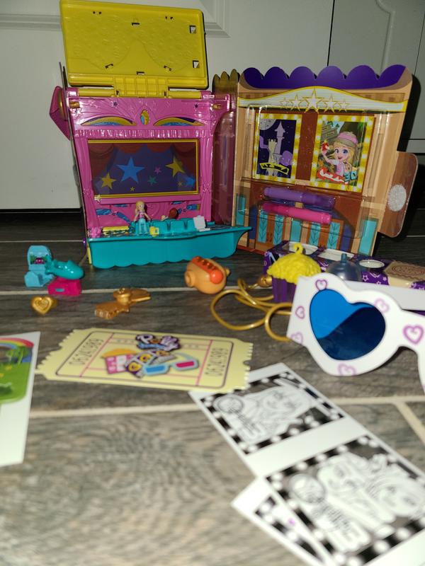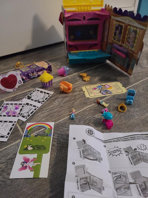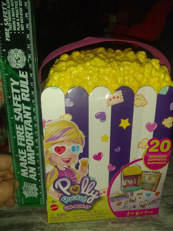 Looking at the outside of this, you would never guess the hidden surprises inside. My daughter loves to take Polly and her friend to the movies, ride the rides, and eat the food. There are even pieces that she can wear as a ring, necklace, or hair clip, which makes her feel like she's right there with Polly. This set has a lot of small pieces that could easily get lostand the instructions were limited, but it's a great expanding set that provides lots of imagination and play time. Plus the fact that it is disguised as a giant popcorn bucket is neat!