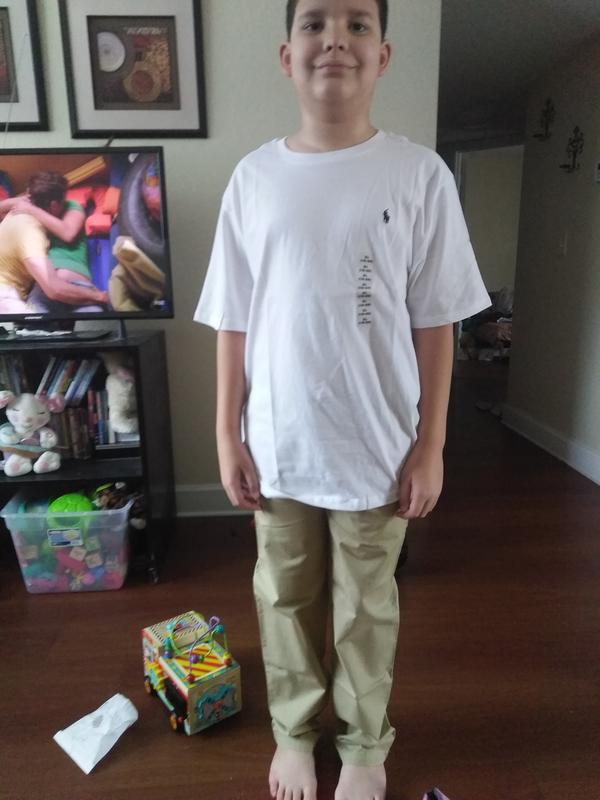 The ralph lauren boys tee is a nice top. It fits my son well. He likes the top. He said the top is comfortable to wear. I will buy mire of this type of top for him in the future. Thanks for making a good product.