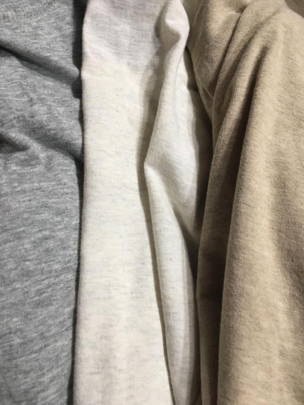 Extremely soft cotton. Great fit. Can be worn laying around the house or as a nice T-Shirt going out.