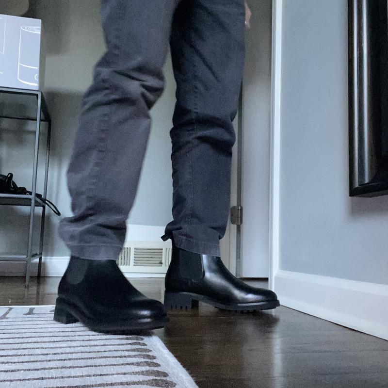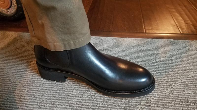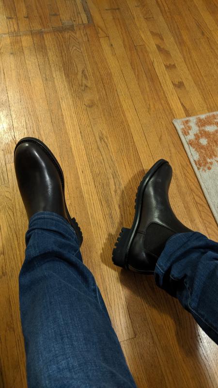 These boots are exactly what I wanted. I had my eye on a Chelsea boot for. Some time but was hesitant to purchase because they looked uncomfortable. Ralph Lauren changed that for sure, these were comfortable and the luster on them allows them to be dressed up or down.