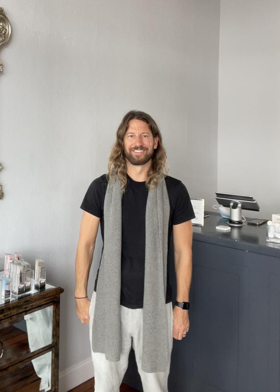 Although it is hard to review a scarf during the early fall (since it's not cold enough to test in the wind), I am impressed by the comfort and the softness of this scarf. It is quite long, which means I can wrap it several times around while getting lots of warmth around my neck. I'm showing a photo here with my favorite jacket to wear it with. As you can see, the small CK jockey matches the brown of the coat, and the grey is a nice addition. I would recommend trying this one out!