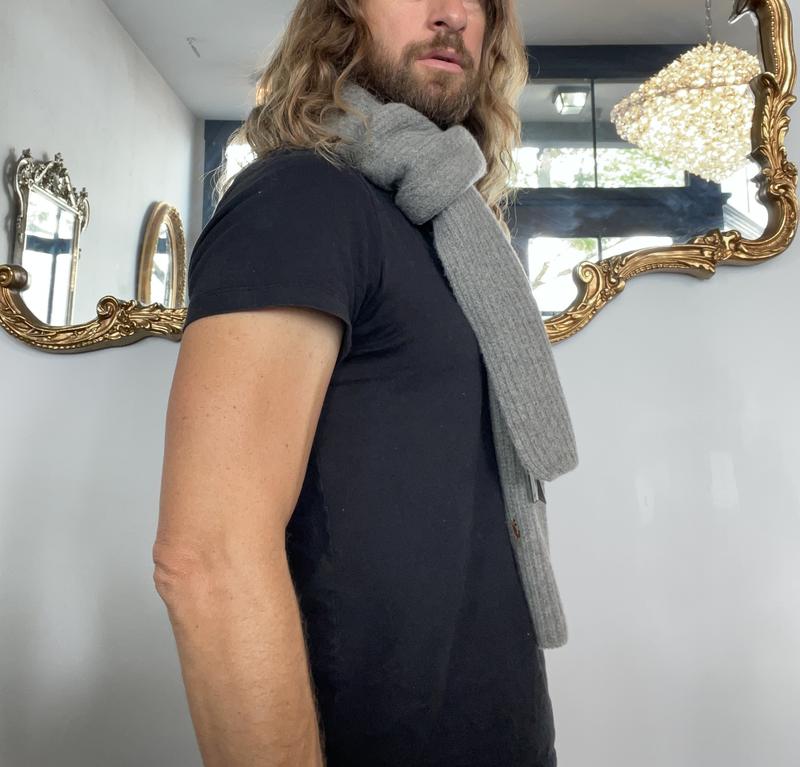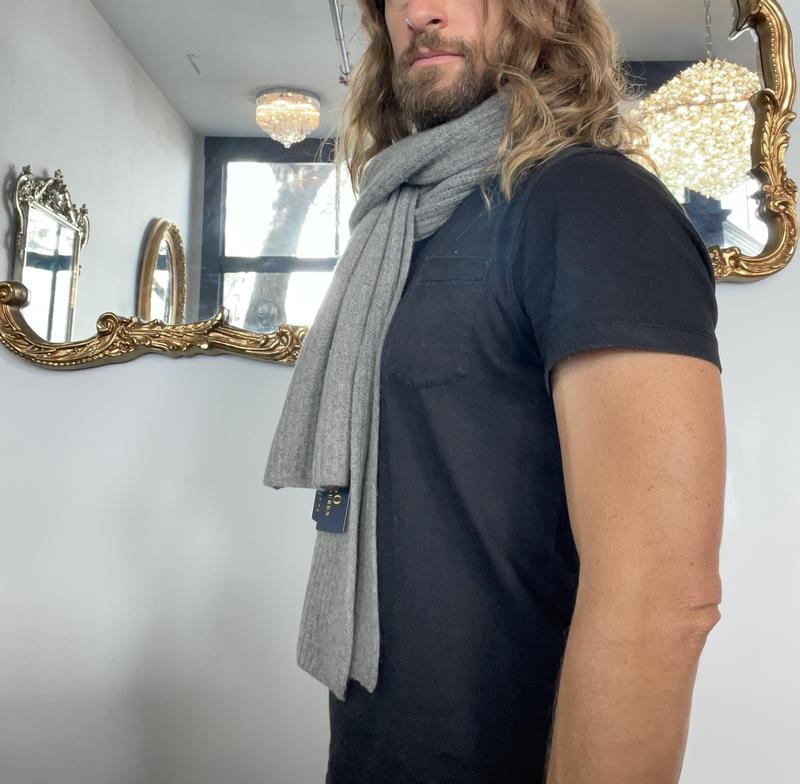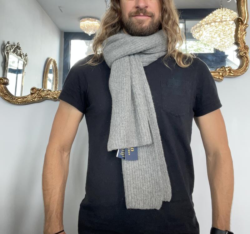 This Ralph Lauren Polo scarf is a solid purchase. The medium grey color allows it to be very versatile, and the 80% wool means you can dress it up some or wear it casually. The 20% nylon content is from recycled material, so that's kind of an unexpected surprise, but should help the scarf keep its shape. I really like the dimensions of this scarf, as it is the perfect width and long enough to wrap around or style however you like. For a wool scarf, it really isn't scratchy, either. I don't think you'll be disappointed if you purchase this scarf.