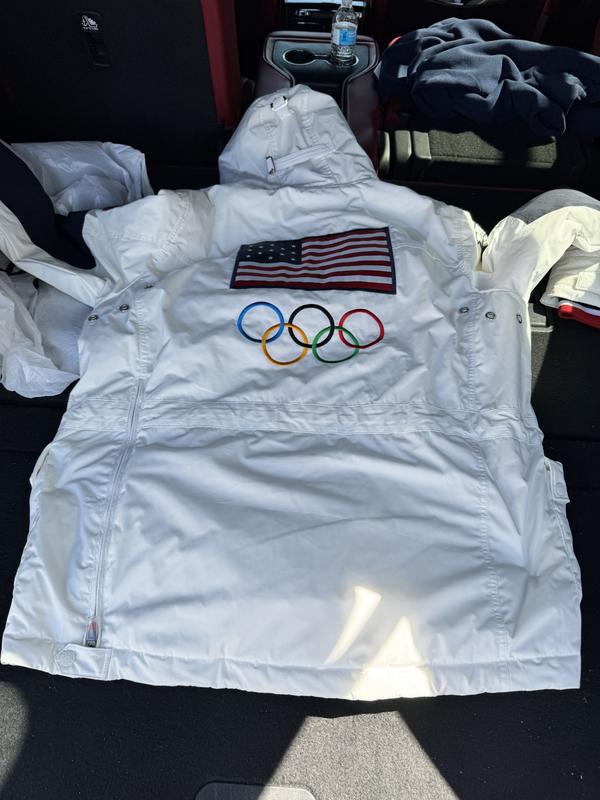 I am so impressed with the look, quality and everything about this Polo Olympic jacket. It was well worth the price I paid for it. I highly recommend this jacket. It does run big, so I sized down as recommended and it still fits with room to spare.