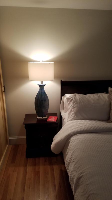 I should have paid closer attention to the dimensions. This lamp is beautiful, but it’s a bit large on the bedside table in our guest room. Would work well in a living room or great room with large end tables.