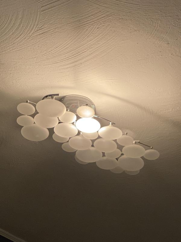 This is a very pretty light for a wide variety of uses. I will admit that using it in a laundry room is unusual, but wow, it has really given the room pizzaz and personality. I'm pairing it with a very cute wallpaper of pond life including frogs to go with the lily pad theme. It is also cloud like so a wall paper of clouds in a blue sky or just pale blue paint appeals to me. Think about a child's bedroom with fun wallpaper. Truly fun light, quite bright which is important in the laundry room. Love this light so much!