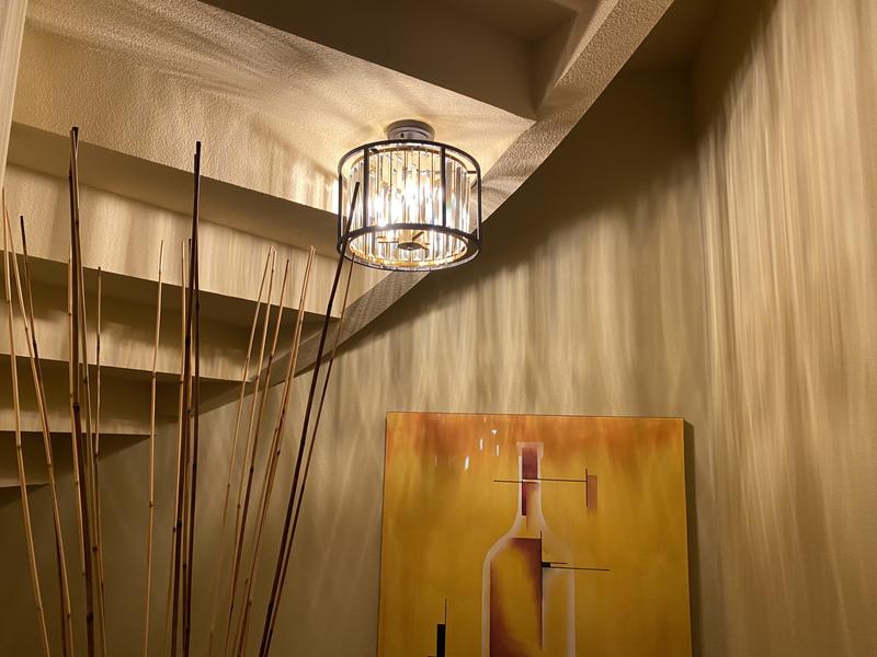 Just what we needed for the entryway! Looks beautiful and gives off excellent light. Not overwhelming but sophisticated. Great addition for a great price. Really happy with this one.