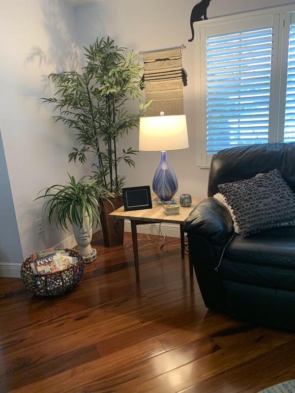 I love, love, love this glass lamp. It goes with the new modern decor of my house perfectly. I’m tired of clear crystal lamps. I’m enjoying the colors. It looks classic and rich. Several varieties you can choose from.
