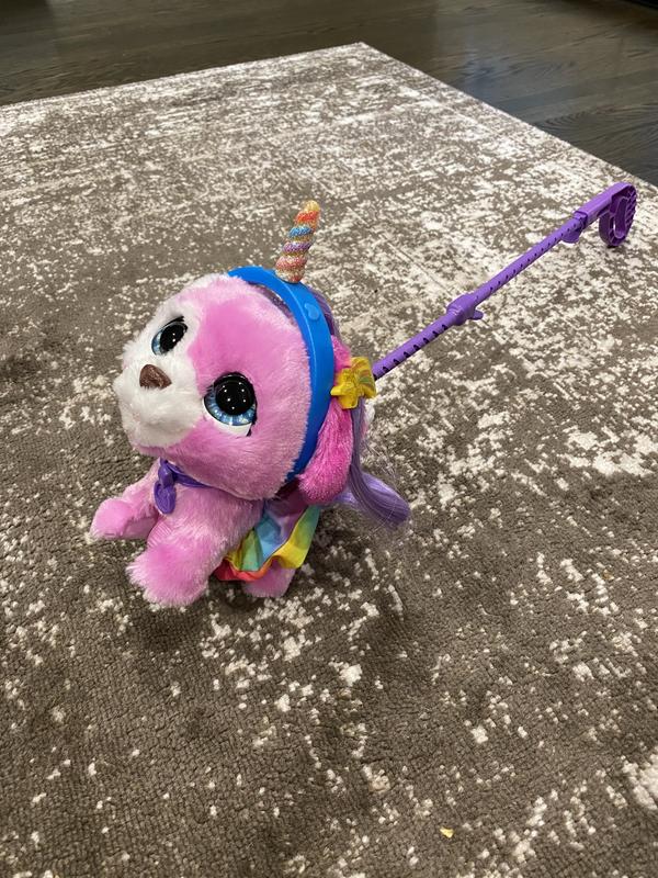 My youngest daughter is obsessed with puppies and because we don't have a real one to walk, she likes to put leashes on her stuffed puppies and walks them, by dragging them around on the leash. She was so excited to have an actual stuffed puppy that walks with the leash! She takes it everywhere. She's also loving brushing the puppy and putting in the hair clips and hair extensions. Adorable!
