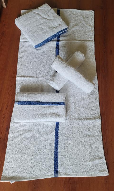 These towels are softer than expected. I would’ve loved for it to be a little bigger but works well for its purpose. We bought the blue stripe, color didn’t fade after first wash. It’s good value for the price, will buy again.