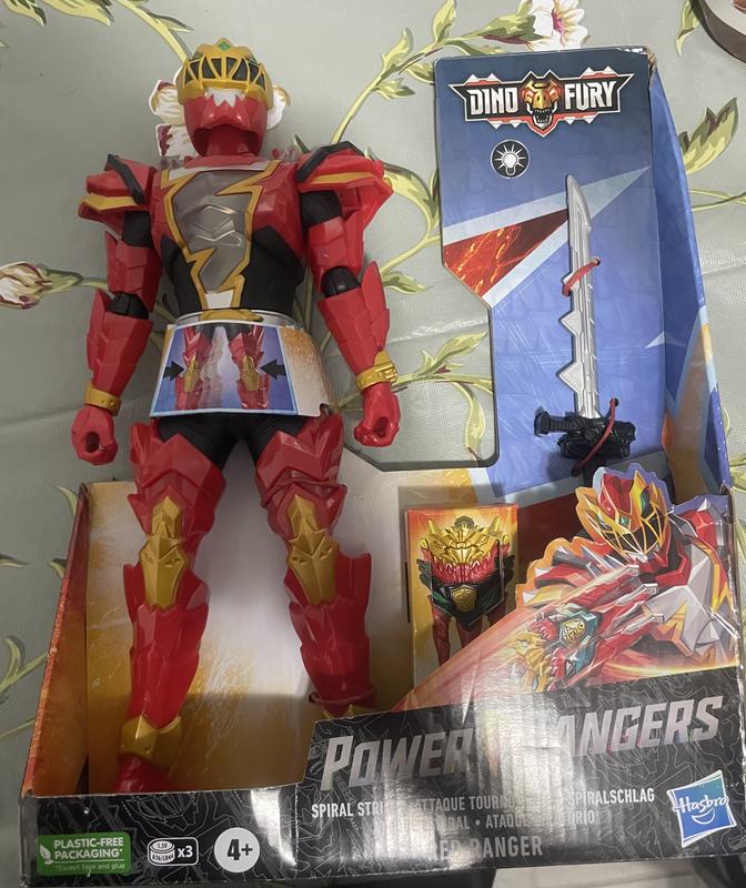 This Power Rangers Dino Fury Spiral Strike Red Ranger looks really cool. It is large and it has a large sward as sell. When you squeeze the legs the upper body turns 360degree and the chest and the shoulders lights up. My son really enjoys this toy and he spends a lot of time with it.