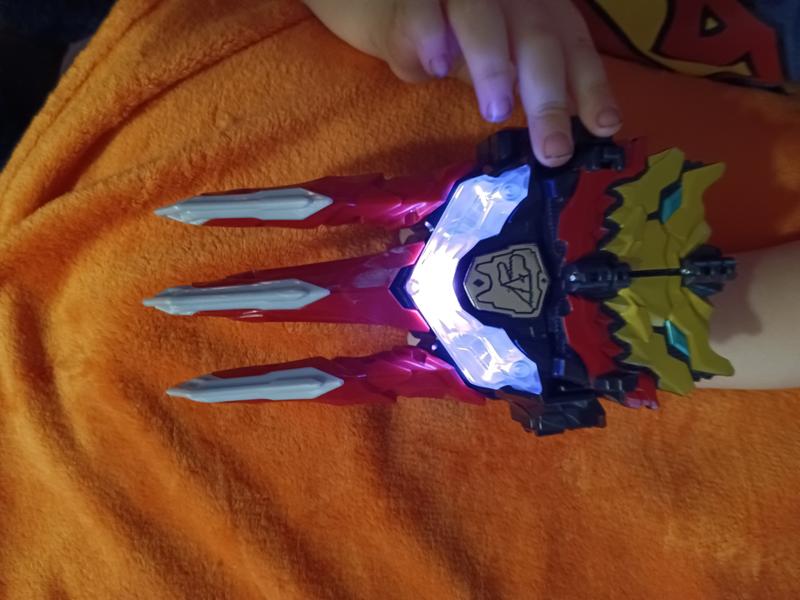 When I was a child I used to love watching the Power Rangers after school and was delighted when my daughter also became a Power Rangers fan.I bought her one of the costumes but I don’t think she was as excited about dressing up in it until the day the Dino Knight Morpher arrived.She is obsessed with it and would wear it to school if she could.It makes a different sound if pointed in different directions (Down for lightning, Up for Fire and straight ahead for ice-modes)It aso comes with a Dino Knight key to unlock even more sounds. She’s been wearing it at every occasion possible which is a first.I’m so glad it’s a unisex toy.