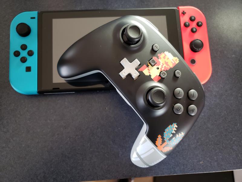 I like having a controller to hold onto with the switch and this one gets the job done. Set up was easy. The only downside is no rumble, but the added buttons make up for it. The retro mario theme is an added bonus and loved by husband and son alike.