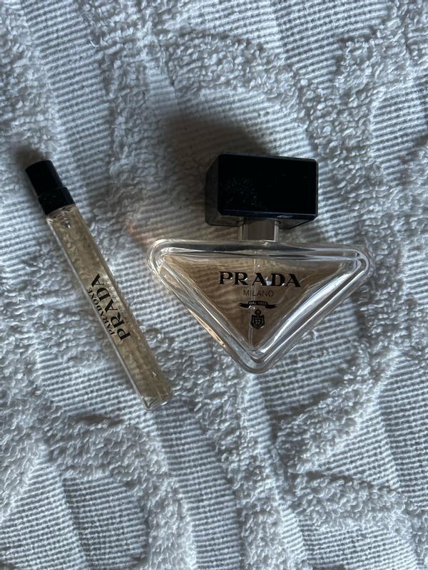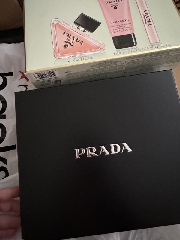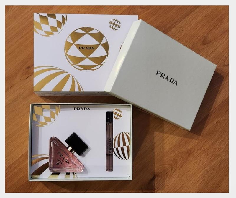 I got this Prada Oaradoxe Parfume pair as gist box. Absolutely beautiful parfume that long lasting. It has fresh floral ambery scent with vanilla notes. Amazing iconic triangle bottle that is refillable.