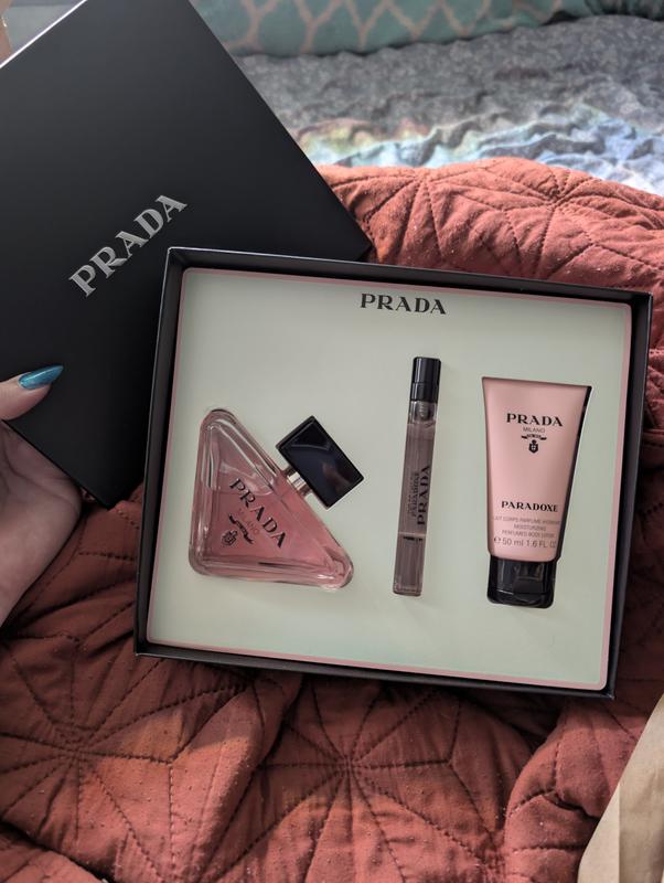 - Prada Paradoxe Eau de Parfum, 3.0 oz.; Prada Paradoxe Eau de Parfum, 0.33 oz.; Body Lotion, 1.6 oz.