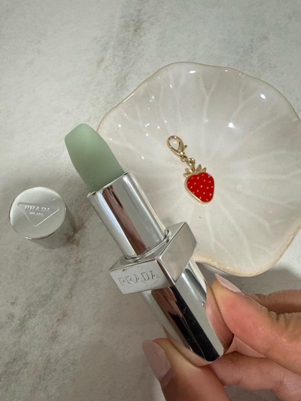 This lip balm is very luxe. While, unfortunately it does have fragrance and a perfumed taste, it feels smooth on my lips and smells like Prada's iconic iris fragrance. The balm is very soft as it melts like a butter onto the lips. Be careful, the stick can break. Being refillable is a good function for me. The balm in universal has almost no sheen so it is useful to both genders. I use this daily and notice smoother softer lips.