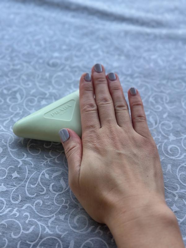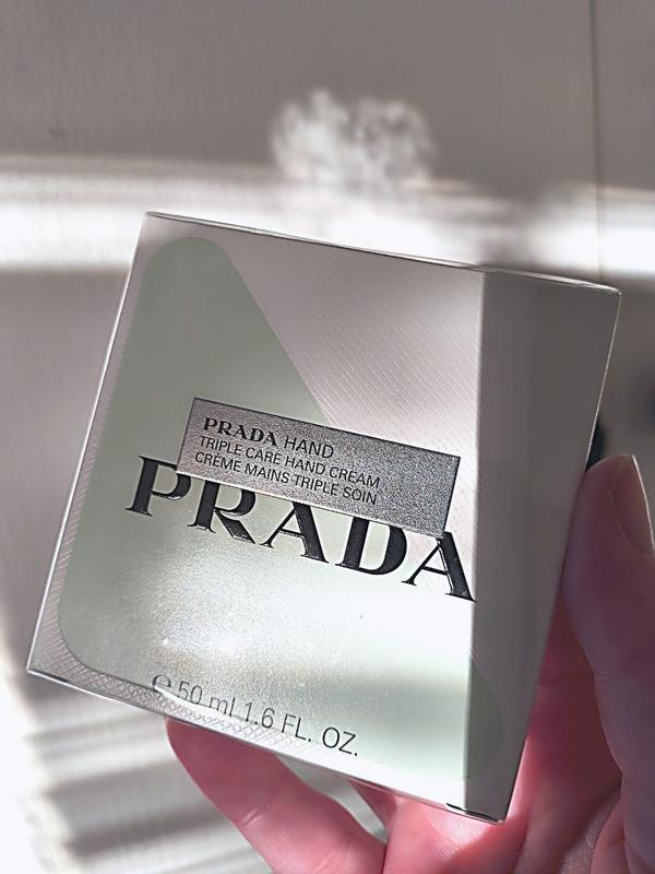 I've tried many hand creams over the years, but have never had one quite this luxe! This formula is perfect in my eyes, as it soaks into your skin instantly and isn't oily at all. It contains niacinamide, biotin, shea butter, and iris extract and actually helps strengthen your nails and nourish your cuticles, too! I really love the light fragrance of this hand cream and it lingers for several hours for me. It has Prada's signature scent, with notes of vanilla and iris. It does tend to smell more floral than gourmand to me, even with the vanilla notes included. It is a light scent and it pairs well with perfumes that I already wear as well. I apply twice daily as recommended and make sure to really massage the cream into my cuticles. I have to say I did notice a difference in my nails and cuticles after the first use. My nails felt less brittle and my cuticles stayed hydrated all day. It got rid of all the lines on the backs of my hands and plumped my skin up. Lastly, the packaging is so cute! It is a light green triangle shaped bottle and the cap is one of the points of the triangle. It looks as luxe as it feels and I love using it and having friends ask what I'm using! The only gripe I have is that the bottle is tiny, and I could use the whole thing in a week if I'm not careful.