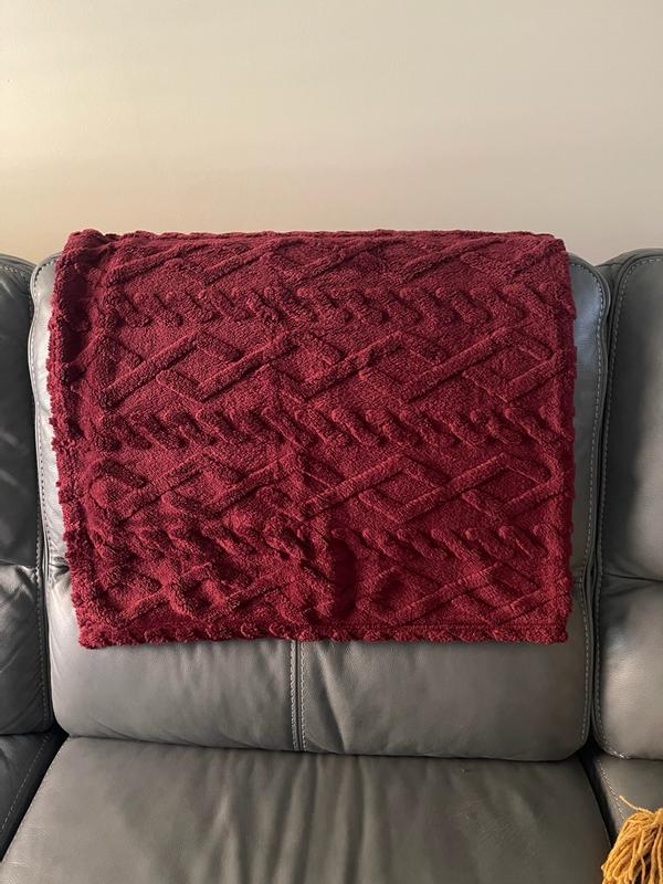 Quality throw with a rich burgundy color. Love the texture of this blanket. Looks beautiful.