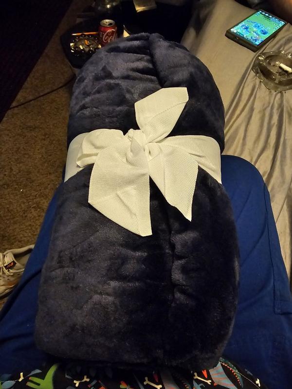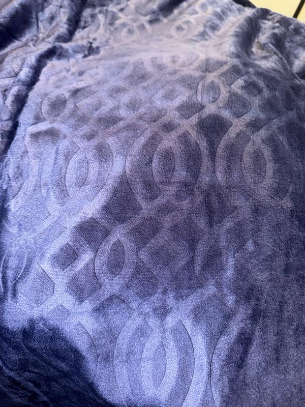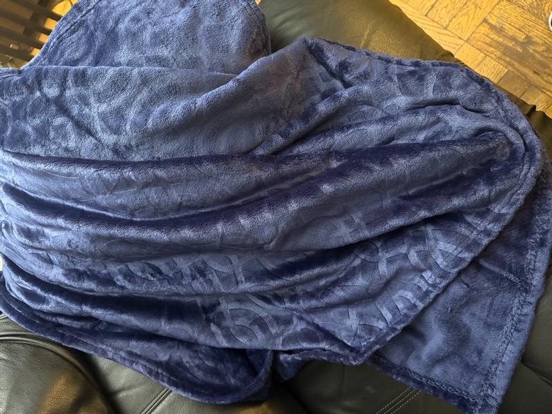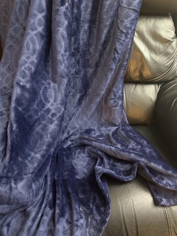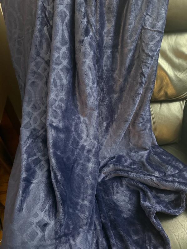 The navy embossed throw is really soft and feels great to the touch. I love the color and the embossed pattern it gives it a nice, look on the couch or bed. It drapes nicely and adds a nice touch to the room. I just wish it were a bit thicker because it’s not as warm or plush as I hoped. It’s still a pretty throw for everyday use, just not the best one I’ve owned.
