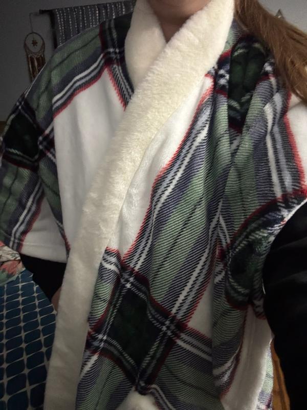 I absolutely love this throw wrap. It’s perfect for Christmas or year round. It is plush and soft, oversized, but super warm. You can use it as a lap blanket or over the shoulders. Looking to purchase more for Christmas gifts