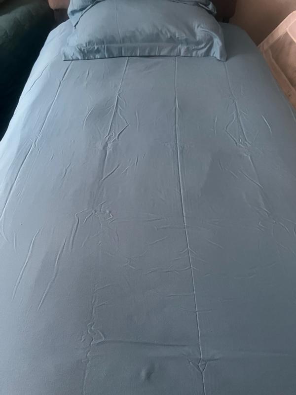 This duvet cover set is soft, comfortable, and looks great in steel blue. It’s easy to put on with the zipper closure, and the matching pillow shams make the bed look put-together. The material is smooth and holds up well after washing, without much wrinkling. It’s thin but durable and feels nice to sleep on, offering good value for the price.