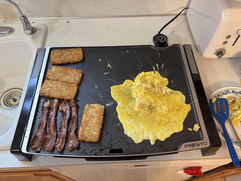 this is my second griddle, The first had a problem with having even cooking surface. The one I have now has that problem and sticks even with using vegtable oil. I will never buy a presto griddle again...