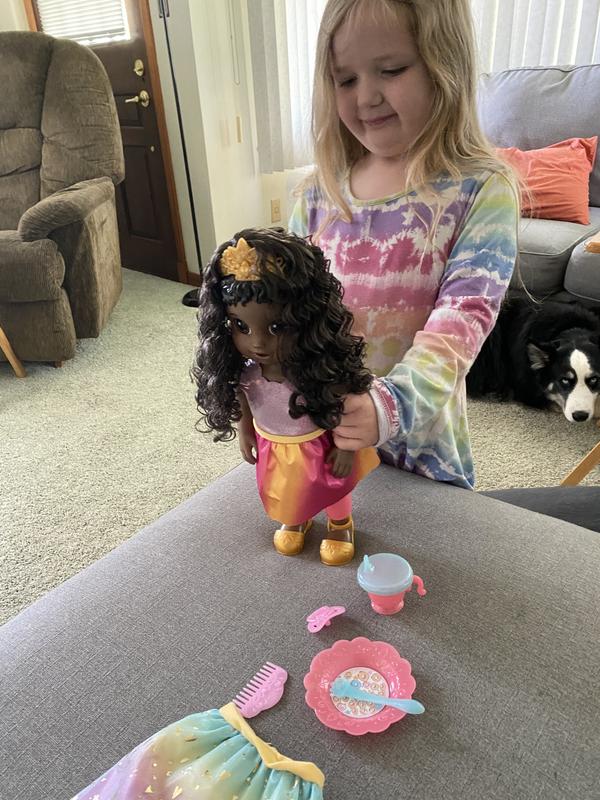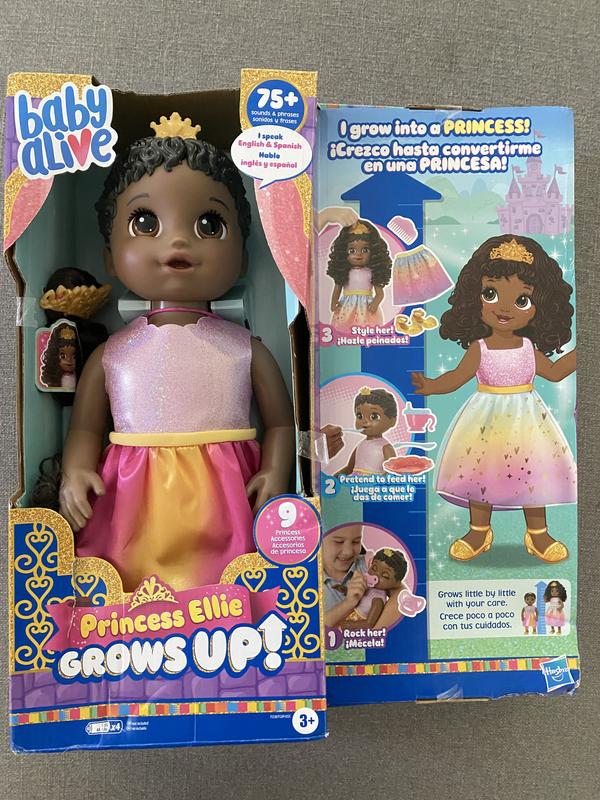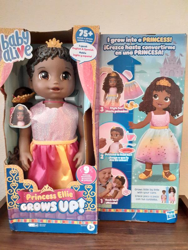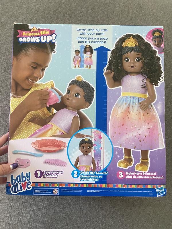 This Baby Alive Princess Ellie Grows Up! Doll, is a hit with my daughter. She was so excited to first play with her. Every time she grew she would have me hold the growth chart up so she could measure her growth. As a plus, my husband said it creeped him out with the fact that it grows haha.