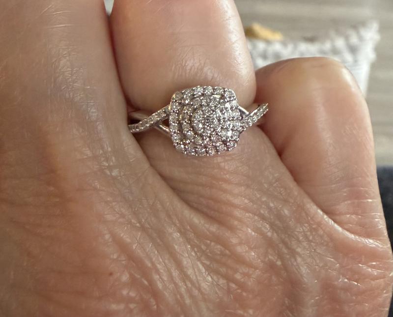 This was a Christmas present from my husband. It is absolutely beautiful and the diamonds are so sparkly! Highly recommend!