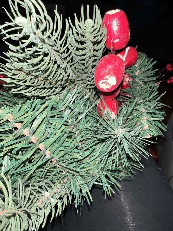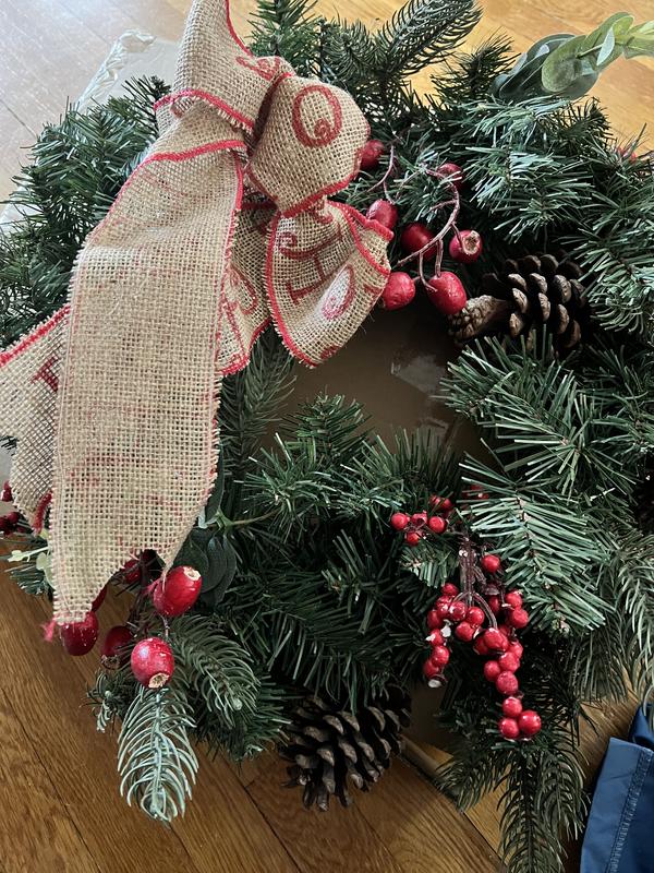 Wreath came smashed in box. I’ve tried to fluff it and the berrys are falling off and some were off in the box. Not even round. I haven’t decided what to do yet. I’m probably going to return it. This is the 2nd item I’ve ordered online and been very disappointed with.