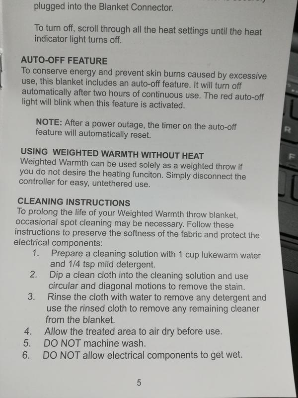 I received this as a gift after wanting a weighted and heated blanket for so long and this was perfect! Unfortunately, my dog nibbled on my controller cord and I couldn't use it . I contacted Pure Enrichment support and they helped me get a new working blanket, incredible customer service! Thank you so much I can't wait to use my warm weighted blanket again.