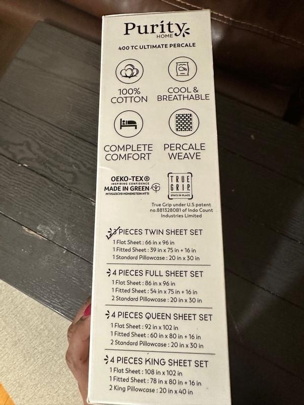 Purity Home400 Thread Count Cotton Percale Pillowcase Pair, Standard