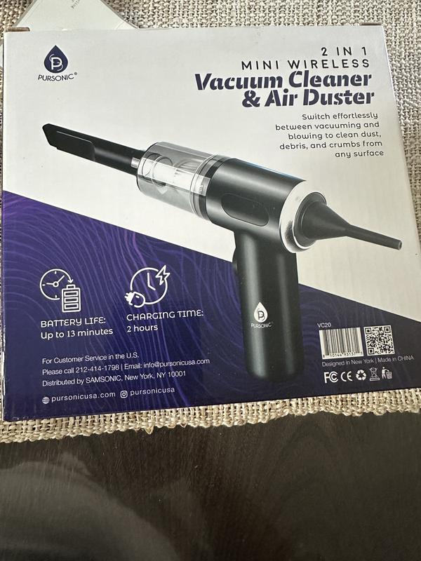 Pursonic 2-in-1 Mini Wireless Rechargeable Vacuum Cleaner & Air Duster I was skeptical and thought this tool would be another gadget that gets one use and is tossed in a drawer. I am amazed, what a powerful little tool! I charged it (has a type-C charging port) and was surprised with the power it has. It features the ability to switch between vacuum mode and air duster mode smoothly and with ease. My husband used it to clean his computer keyboard and it did a great job. It comes with several attachments which you are able to switch easily. It even has a removable filter that you can clean. The fact that it is portable won me over. It can be used just about anywhere. Do not hesitate to purchase!