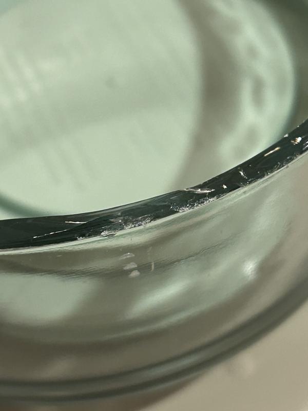 When I opened the box and took the bowls out they appeared fine. Then when I picked up the lids, I felt something pierce my skin and I saw tiny glass chards embedded in my finger. It is hard to get them out. And now I see one of the bowls has cracks. I didn’t notice until I tried to use it. Long time customer. Very disappointed with Macy’s for such poor quality and obviously not caring about safety.