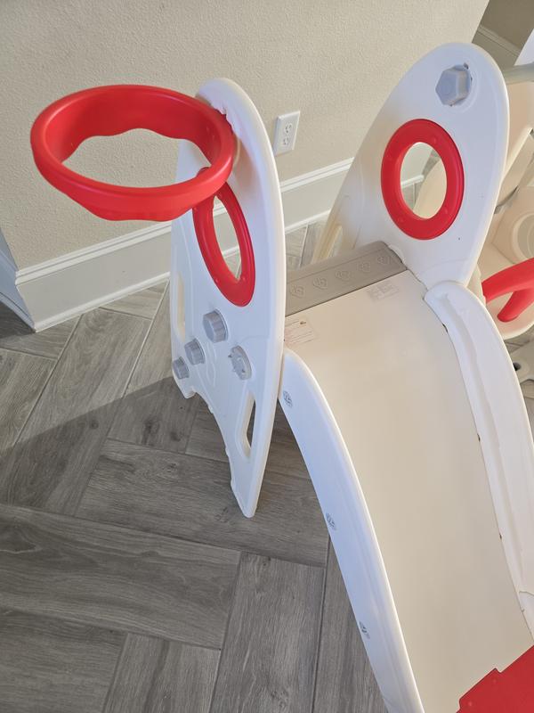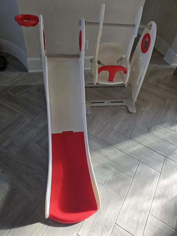 When it comes to brands, I've always loved Qaba design, style and brand in general. I ordered this 4 in 1 toddler swing and slide set for my newly one year old birthday and he loved it so much! I ended up using it in our playroom when it's cold outside and once it gets warm I plan on using it in our spacious backyard. Extremely easy to set up and I love how sturdy, durable it is. Not to mention it has a basketball hoop with a basketball. As a mom of 4 boys, I knew this would be a big hit for my little one. My oldest 3 love teaching their baby brother how to swing and slide. I use a soft mat for the slide as he lands down the slide. But outside would be perfect with the green grass. I love that the swing comes with a belt that's adjustable. This set is great for 1 to 3 years old. Love the light colors!