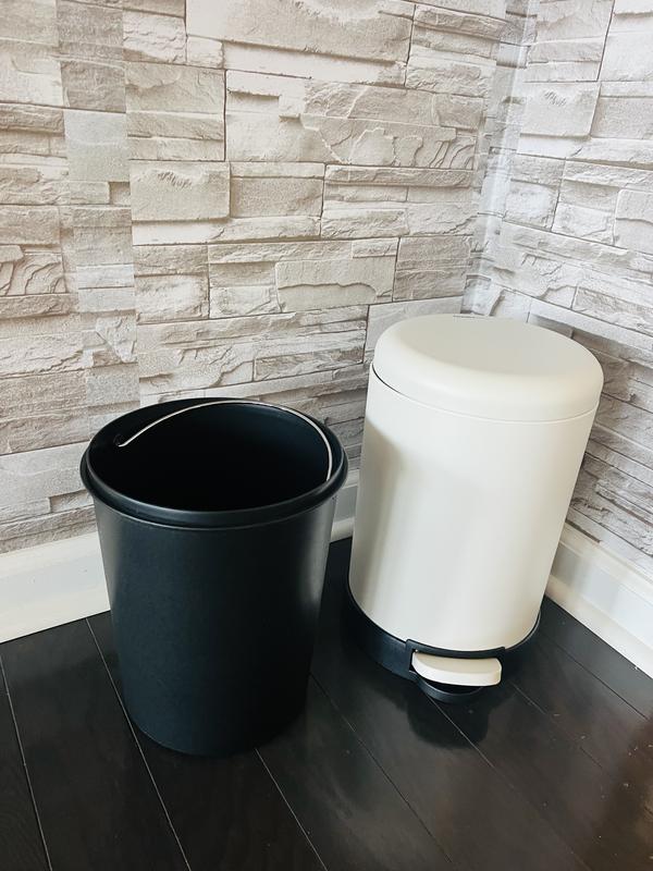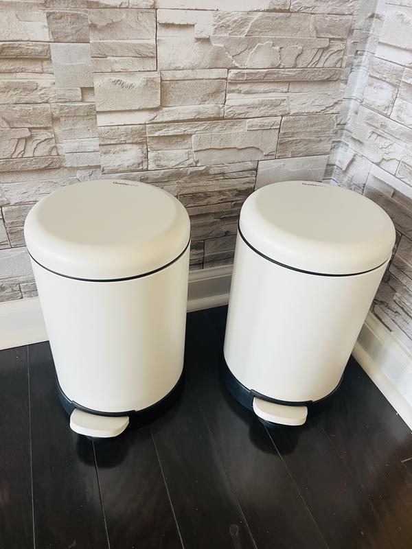 I love my new trash cans. They are light weight, but sturdy and open smoothly. I wasn't sure I'd like the white color, but I'm so glad I got it. Its also nice to have a self closing can that hides all the dirty trash from guests. The small inner can removes easily for emptying and cleaning. Best of all i is just the right size to fit in the small space next to the toilet. Several others I tried were too large.