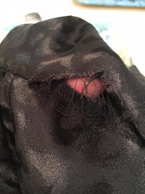 When I received the dress, it had a tear about 3 inches long along the front elastic waist. I was going to have it sewn, but I noticed where it was torn, the fabric was shredded. The material is very thin, and the dress snags very easily. Too bad because the style is really cute.