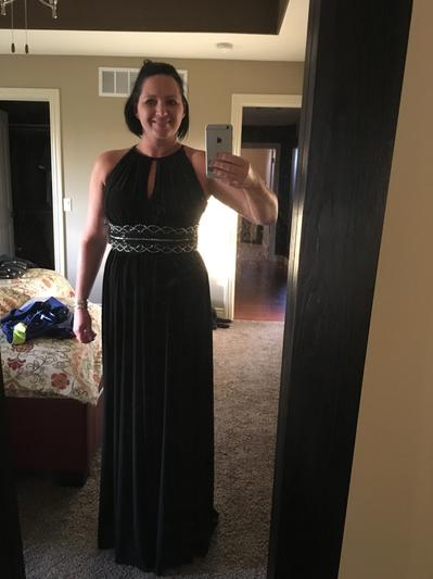 Beautiful dress, true to size, well made flowing material. Loved the beaded waistline and fun neckline.