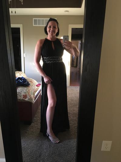 Love the style but had to return. I wear a size 6 comfortably but this size 6 wouldn’t zip all the way tight very pretty color and style. Slit is just enough