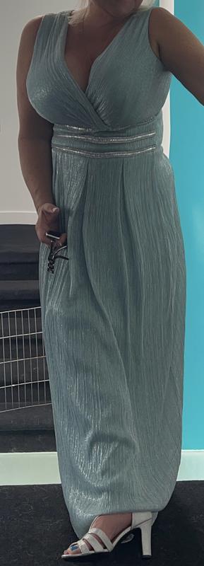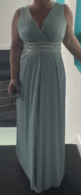 Beautiful Sea Foam evening dress. Has enough silver bling for an evening on a cruise ship without it being over the top. I purchased a silver Shaw (from Macy’s) to add a little cover up over my shoulder’s and arms. Runs true to size