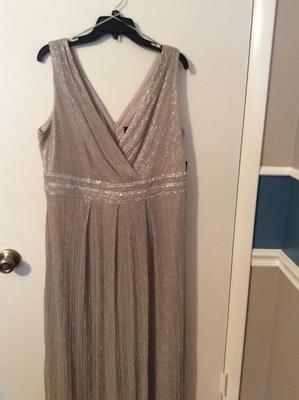 This is a very pretty dress. Great, flattering cut. I couldn’t tell from the picture that the fabric is actually metallic and glitzy. I was looking for something more understated.
