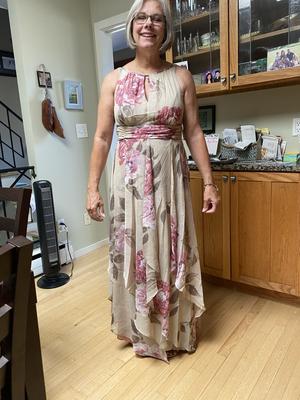Beautiful dress , love the way it flows , light weight and the shimmer effect makes it perfect for special occasions but can also be a beautiful choice for a more casual occasions . Bought it for a wedding reception.