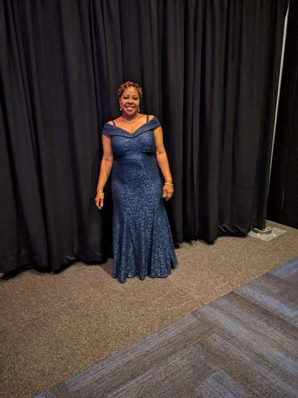 Beautiful gown, fit was perfect, and arrived quickly! Would definitely recommend, and will purchase from Macy's again.