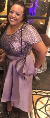 this gown is not the color I wanted but it's not bad it's is a blue type of color but it is hood for an evening type event. still think8ng about taking it back b getting a different color. but I did get it on sale at a decent price!