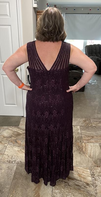Needed gray per bride’s instructions. This was my 3rd try with this same dress in stores - tried 16 & 18 which I could get into but snug. I finally went to Macy’s online final sale MarketPlace and purchased 16W which fits perfectly. So if you’re thick in the middle, stick to W-sizing. Dress is beautiful, well-made, soooo comfortable and offered at a very reasonable cost. I plan to wear this to my son’s wedding in early September and the sleeveless look is perfect for a warm autumn day. Recommend!