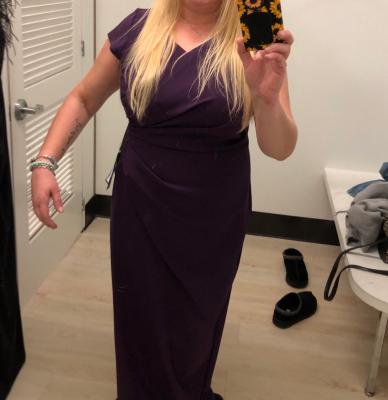 Love this dress! Perfect for my son's wedding in September. Very comfortable. I was a bit concerned about the slit, like if I'm too old for that, but my future daughter-in-law assured me that it is age-appropriate. The slit only comes right above the knee. I will have to have the dress shortened a bit.